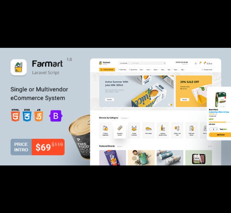 Farmart v1.23.9 – Single or Multivendor Laravel eCommerce System PHP Script. Farmart is a Clean and Modern Software for Marketplace Online Stores. With design clean and trendy, Farmart will make your Online Store look more Impressive and Attractive to Viewers. Help increase high Conversion rate to Buy Product with your Customers so Quickly.